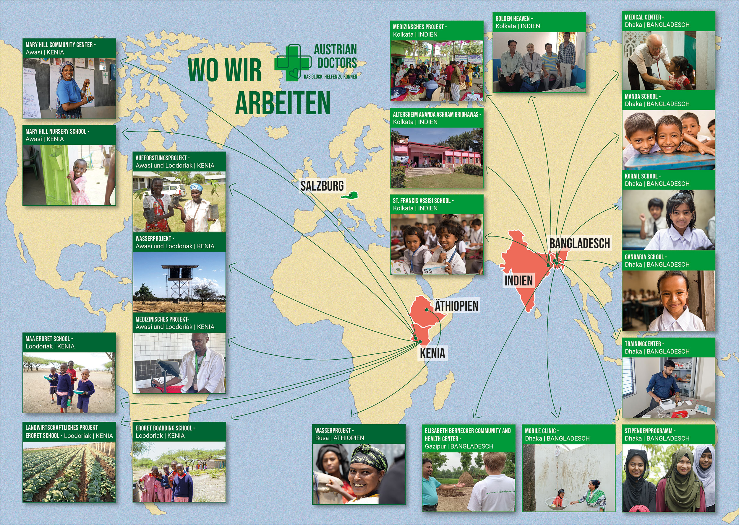 Dort, wo das Elend zum Alltag gehört, Bildung trotz Schulpflicht nicht verfügbar ist und basismedizinische Versorgung ein Luxusgut ist, genau dort arbeiten wir. Unser Schwerpunkt sind die Armenviertel von Dhaka (Bangladesch) und Kolkata (Indien) sowie sehr abgeschiedene Regionen in Kenia, Äthiopien und Bangladesch.
